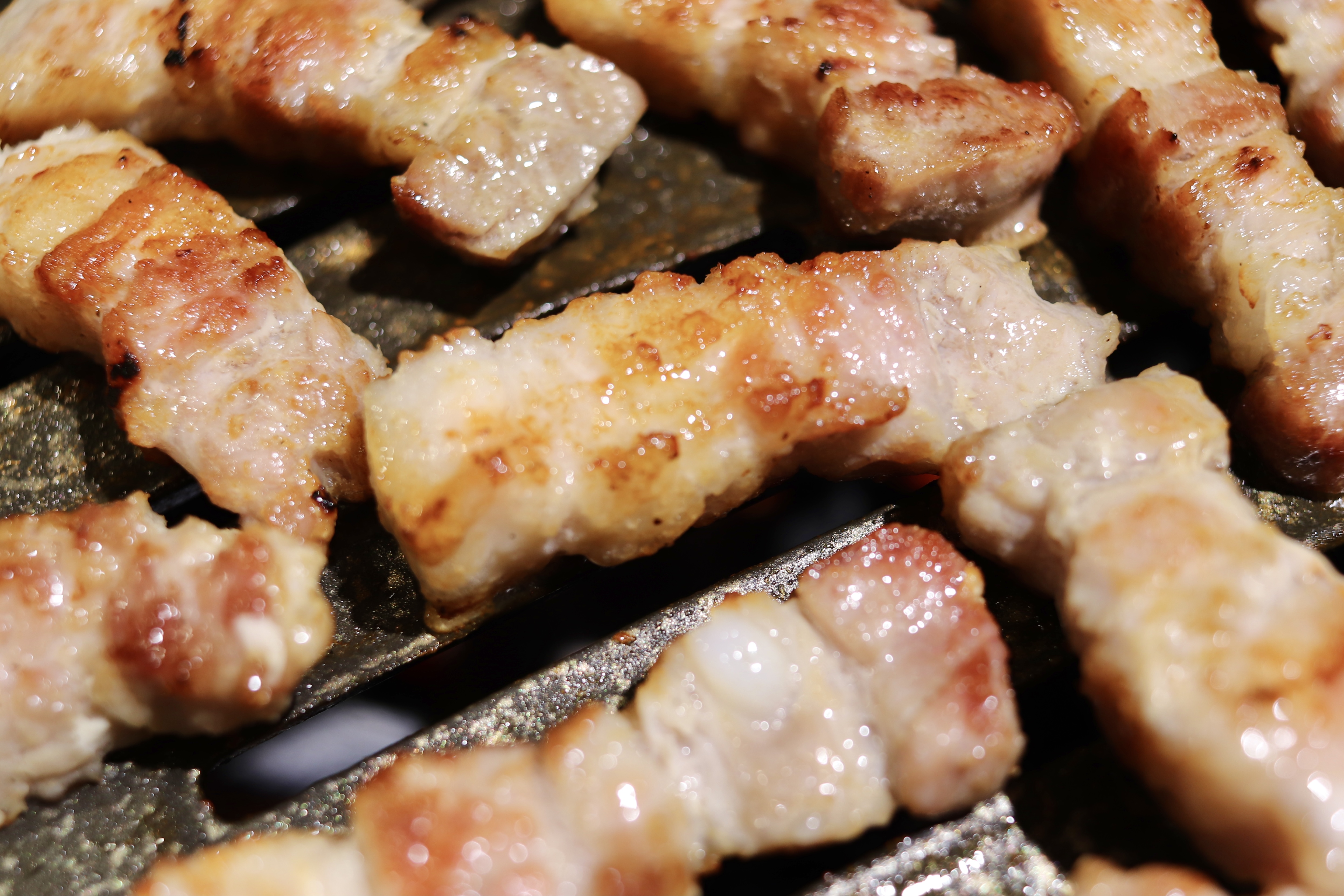 이날 먼저 삼겹살로 시켜보았는데요. 딱 보기에도 두툼한데다가 칼집이 나있어 맛 없을수가 없겠더라고요. 버섯도 함께 구워 먹을 수 있었습니다.