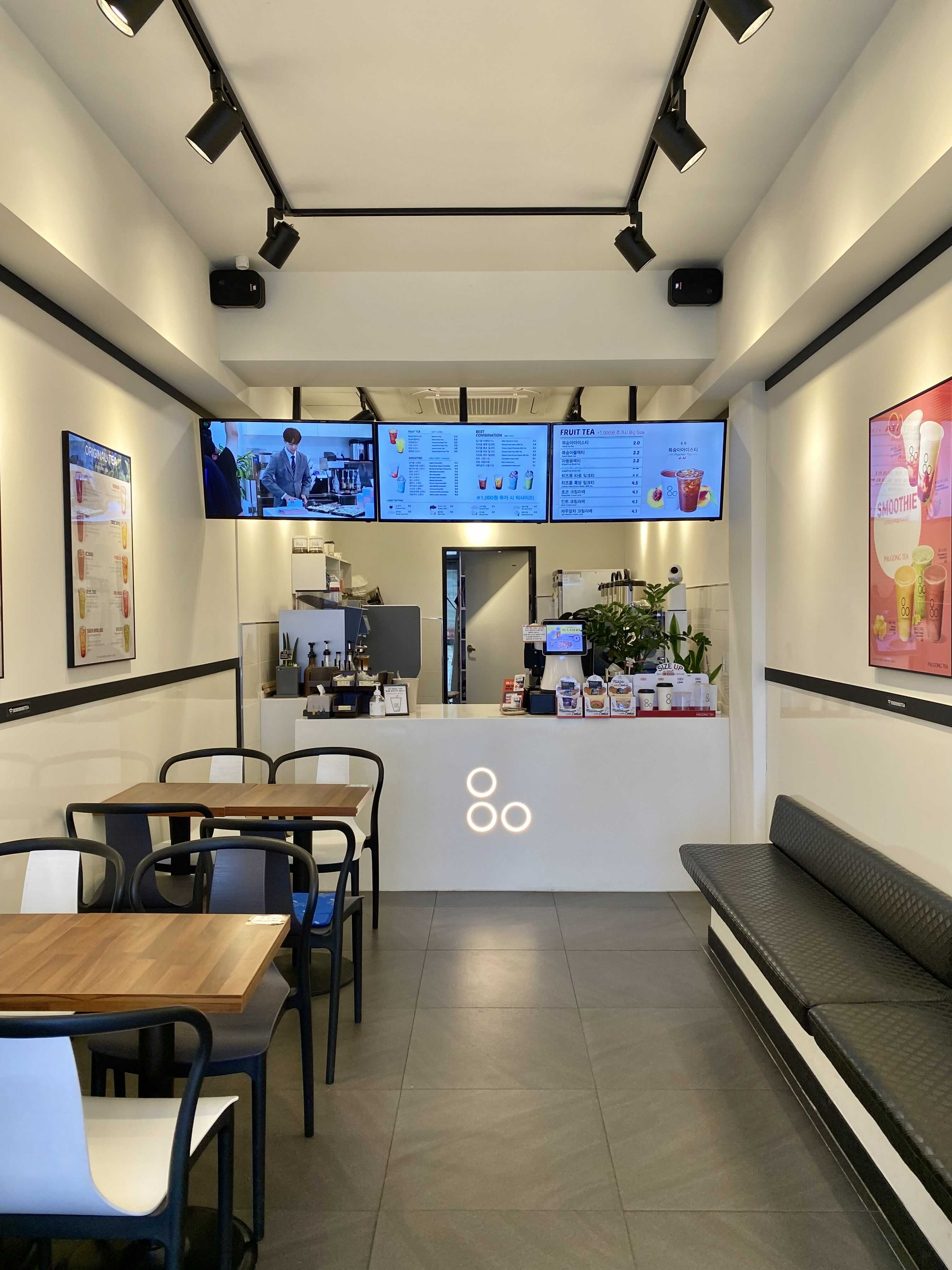 참고로 키오스크가 있어서 천천히 마음에 드는 메뉴로 주문도 할 수 있었는데요. 팔공티의 장점이 하나부터 열까지 모든 것을 고를 수 있다는 거거든요. 당도 조절, 얼음 양 조절, 사이즈 등 다양한 옵션들이 있는 만큼 하나씩 내가 정해가며 주문하기에도 좋답니다. 물론 계산을 도와주실 직원분도 있기 때문에 기계 사용이 어렵다면 직접 주문하셔도 된답니다.