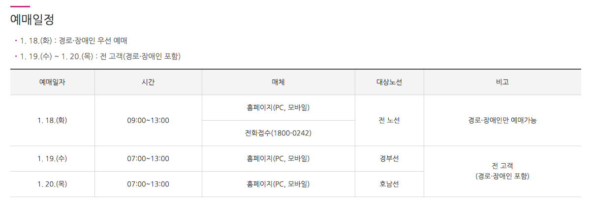 우선 첫날인 18일에는 정보화 취약계층인 경로, 장애인을 대상으로, 19 / 20일에는 모든 국민을 대상으로 판매하고 있어요. 승객간 거리두기를 위해 창측 좌석을 우선 발매한다고 하니 서두르셔야겠죠. 내측 좌석은 정부의 방역대책에 따라 판매여부가 달라질거라고 합니다. 그럼 방법 자세히 살펴보겠습니다.