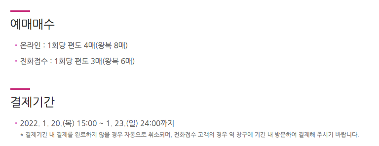 예약한 승차권은 1월 20일 15시부터 23일 24시까지 반드시 결제 해야해요.