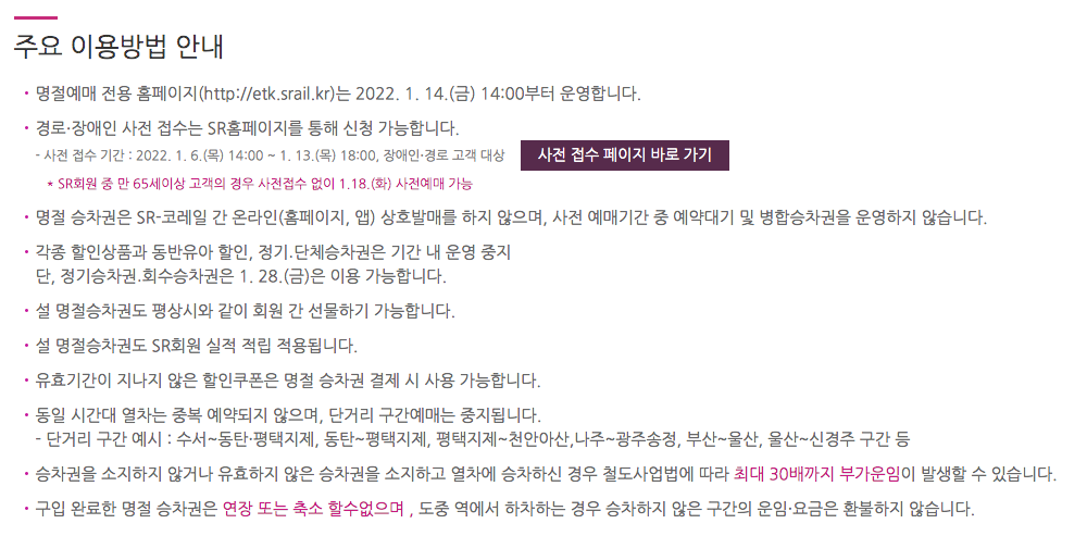방법 : PC나 모바일로 '명절승차권 예매 전용 홈페이지' 로그인 후 예매 가능 / 비회원일 경우 가입 해야 합니다.